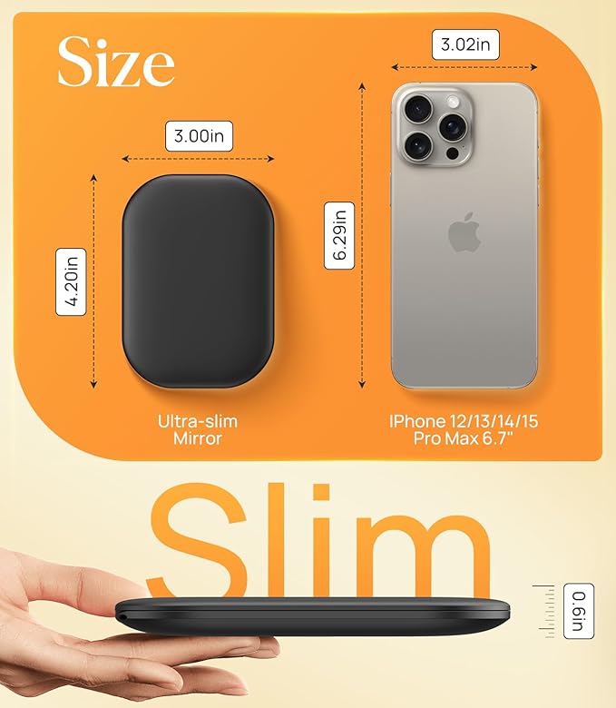 - 【Rechargeable and Portable】 The portable mirror is equipped with a rechargeable battery that can support 1-2 weeks of use on a single charge. Mini mirror for purse come in small and ultra-thin sizes, perfect for your pocket, handbags, and wallets