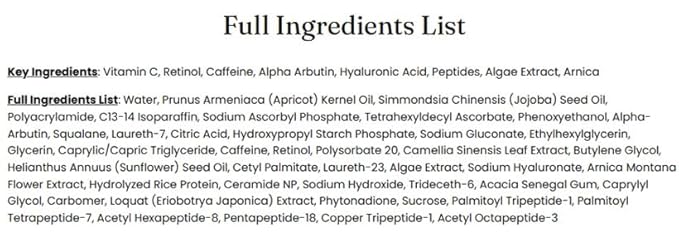 - CAREFULLY FORMULATED: This product is formulated with high-quality & effective ingredients. Vitamin C is a potent antioxidant that brightens skin, neutralizes free radical damage & improves the look of aging skin. Retinol, a derivative of Vitamin A, improves the look of skin tone, texture, breakouts & post-breakout marks. Alpha Arbutin is extracted from the bearberry plant & improves the look of dark marks & hyperpigmentation.