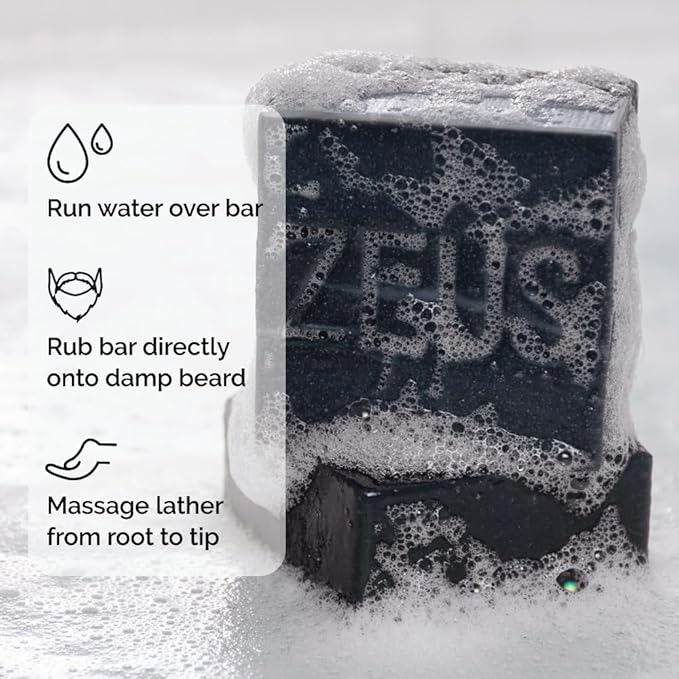 - NATURAL WASH: Upgrade your beard care with the ZEUS Beard Shampoo Bar formulated to hydrate, soften, and clarify without harsh chemicals. Encourages healthy growth and soothes dry, irritated skin. Portable design fits easily in your travel kit.