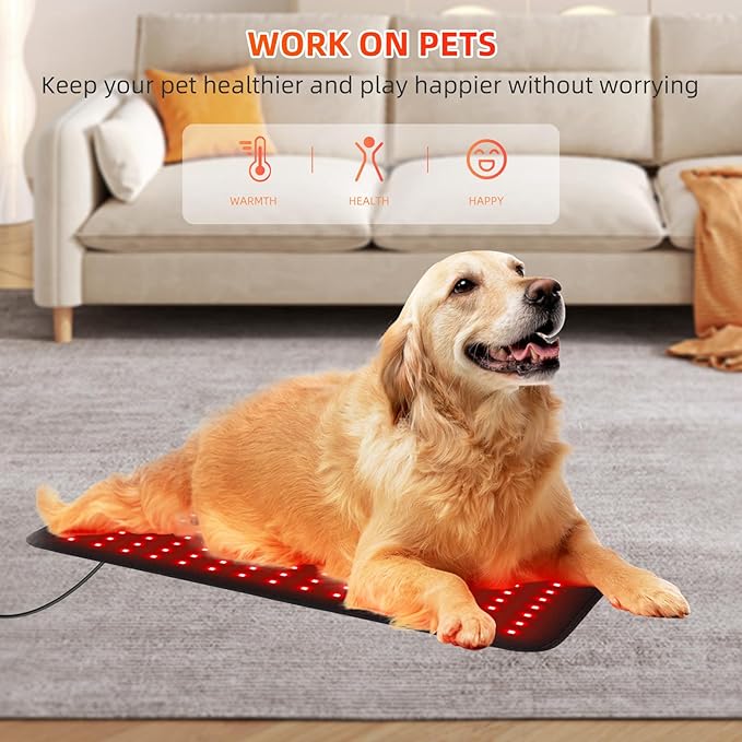 - Multi-function & work on pets: Adjustable wearable red-light therapy device fits around the target area. Large area you can wrap around your lower back, waist, shoulder, leg, knees, arms, hands, feet and so on. The red light therapy large pad also works on your pets' families, keeps your dog healthier, recovers faster from muscle damage, and has fun playing. No more expensive trips to spas or expensive parlors, self-care with the red light therapy device in the office or at home