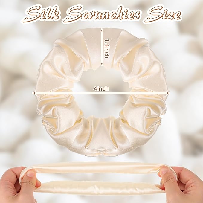 - 【100% Mulberrry Silk】Our silk scrunchies are formulated with the 19 momme mulberry silk, silk smooth surface, shiny, comfortable and gentle on hair, prevent hair being damage and tangled.
