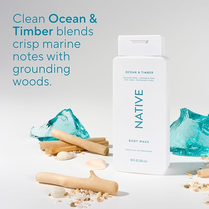 Native Body Wash Contains Naturally Derived Ingredients | For Women & Men, Sulfate, Paraben, & Dye Free Leaving Skin Soft and Hydrating | Ocean & Timber 18 oz