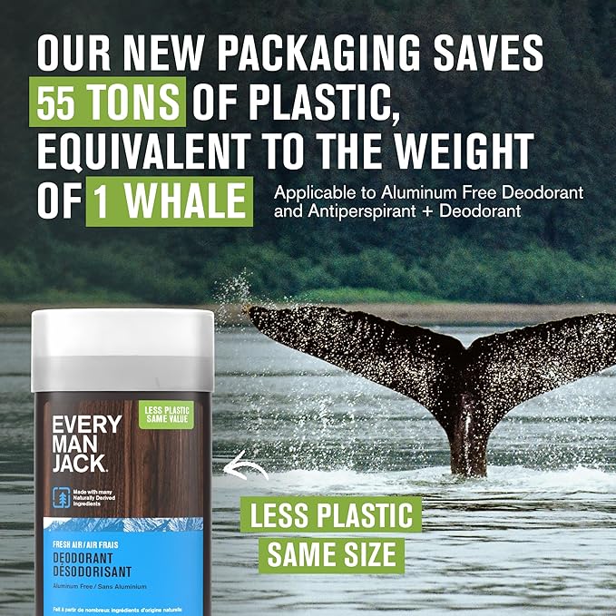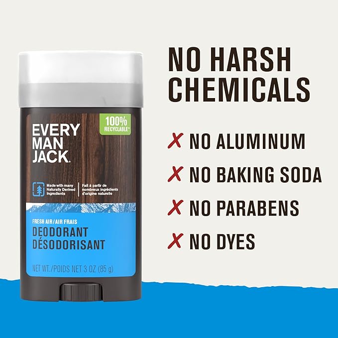Every Man Jack Fresh Air Men’s Deodorant - Stay Fresh with Aluminum Free Deodorant For all Skin Types - Odor Crushing, Long Lasting, with Naturally Derived Ingredients - 3oz (2 Pack)
