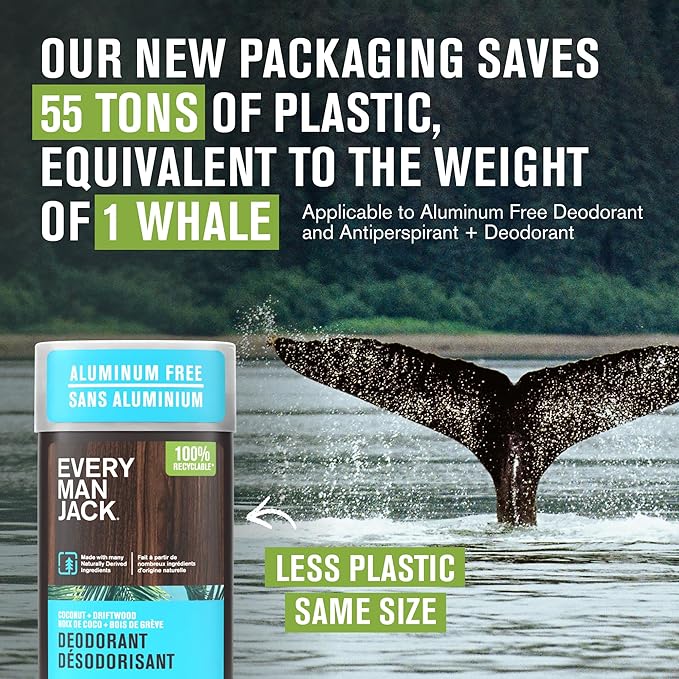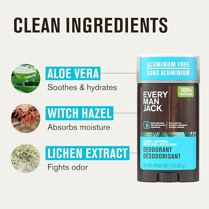 Every Man Jack Coconut Driftwood Men’s Deodorant - Stay Fresh with Aluminum Free Deodorant For all Skin Types - Odor Crushing, Long Lasting, with Naturally Derived Ingredients - 3oz (2 Pack)