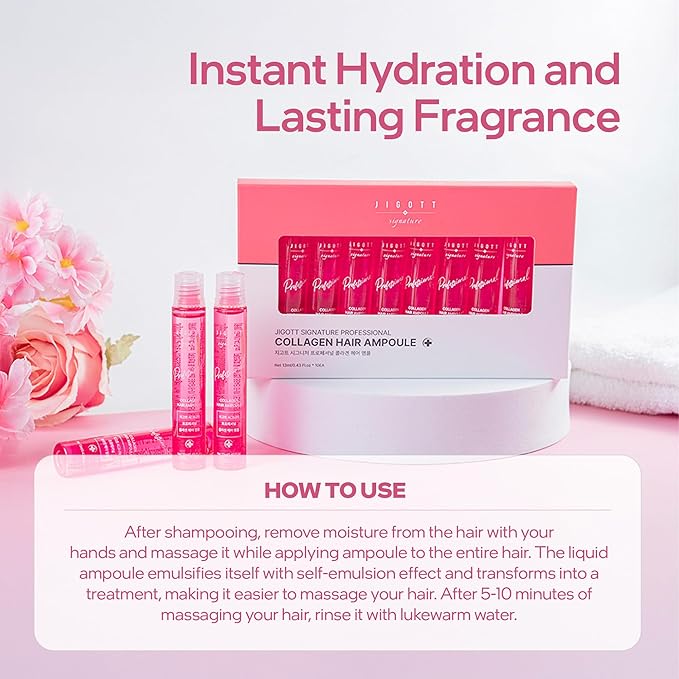 Jigott - Signature Professional Collagen Hair Ampoule, K-Beauty Hair Treatment, 13ml/0.43FL.OZ *10 EACH…