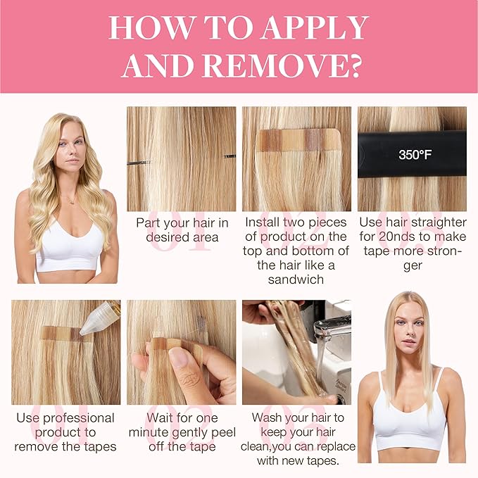 - Heat-Styling & Care Tips: GOO GOO tape in extensions are heat-safe up to 250°F. Curl or straighten as desired. Wash gently with mild shampoo in lukewarm water, then air dry. Keep them smooth, shiny, and ready for any look.