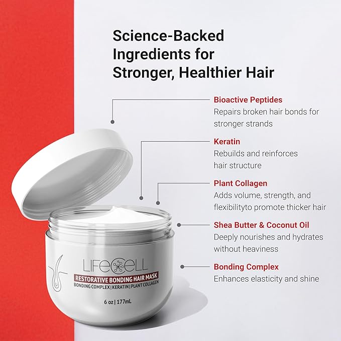 LifeCell Repairing Hair Mask – Restorative Bonding Treatment with Bioactive Peptides, Keratin, Plant Collagen, Shea Butter & Coconut Oil – Deep Nourishment & Strength for All Hair Types