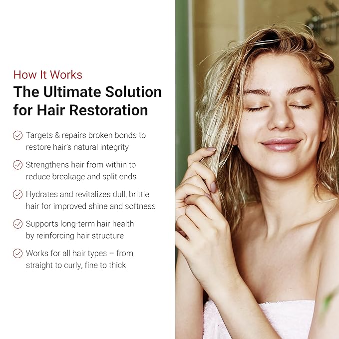 - ADVANCED BOND REPAIR TECHNOLOGY – Powered by bioactive peptides, this intensive hair mask mimics the natural repair process, restoring broken bonds and reinforcing hair strength for a healthier, revitalized look.
