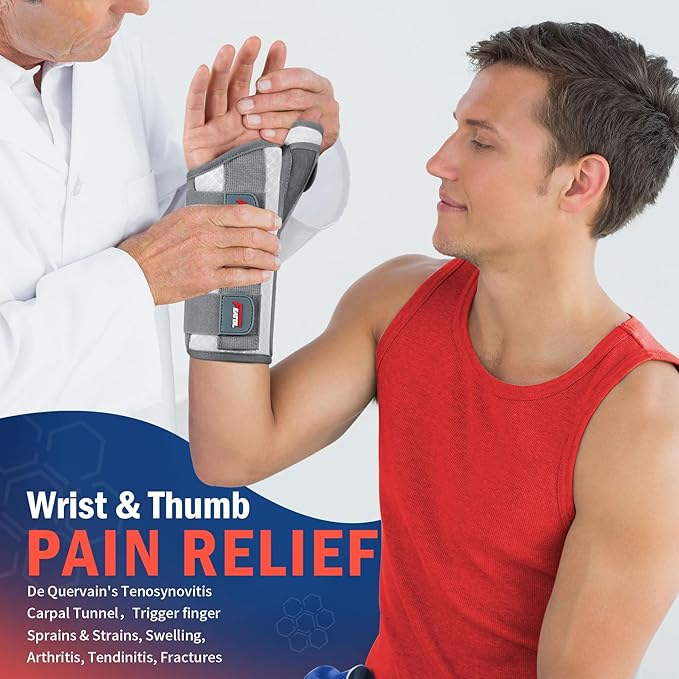 - 【Customized Fit】Our wrist brace with thumb support has 4 adjustable strap provided customized compression. And also with two removeable aluminum splint, one in the plam and the another Splint in the side of thumb which can provide customized fit and maximum stability