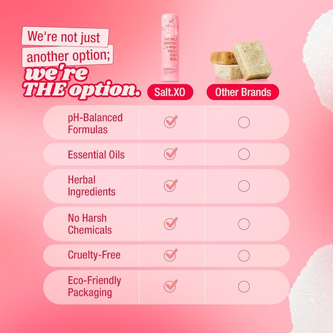 - Free from Harsh Substances: SALT.XO Yoni Gel Wash is carefully crafted without parabens, sulfates, fragrances, dyes, or other harsh chemicals, providing a safe and gentle cleanse that protects your intimate area without any harmful effects.