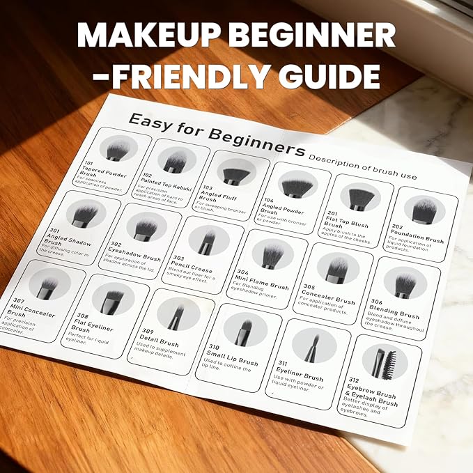 - Elevate your beauty routine with a thoughtfully curated brush set – each piece elegantly labeled with its purpose, guided by a user-friendly manual, and housed in a timeless PU leather case for effortless sophistication at home or on the go. Come with User Guide Book Explaining How to Use Every Brushes Great for Student,Beginners and Professional Makeup Artist to Create a Flawless Look