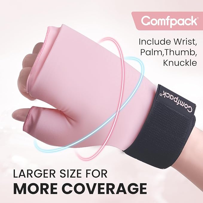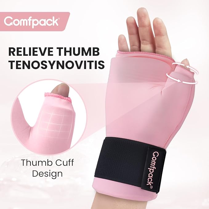 - Targeted Hand Thumb & Wrist Pain Relief - Comfpack hand ice pack glove with uniquely thumb cuff design can provide pain relief for hands, thumb, wrist, this reusable ice gloves actively reduces inflammation, carpal tunnel, hand injuries, arthritis, mommy wrist, tendonitis, tenosynovitis, and can also speed up surgery recovery.