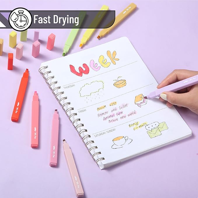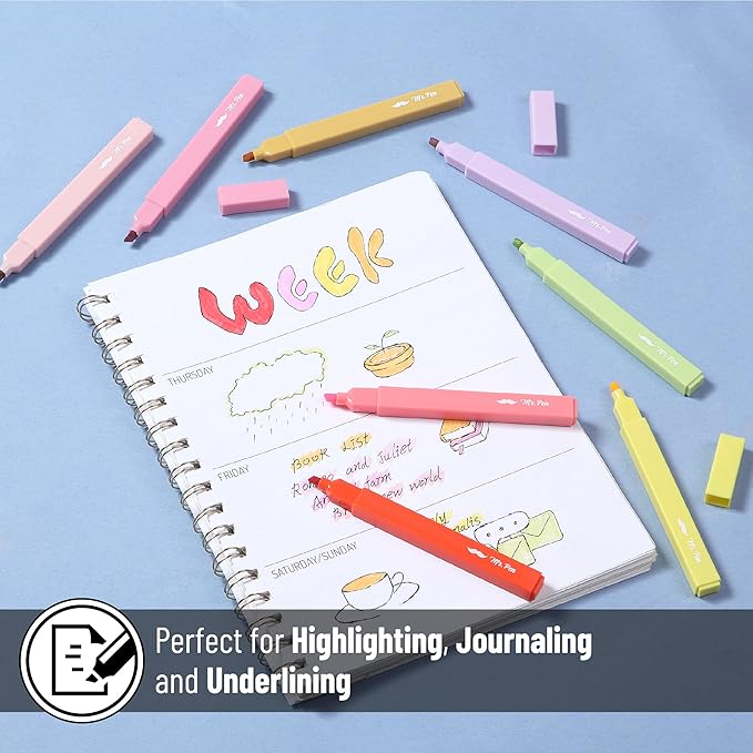 - Featuring a cheerful mix of pastel and lively hues, these highlighters bring a refreshing and creative touch to your planners, journals, and study materials.