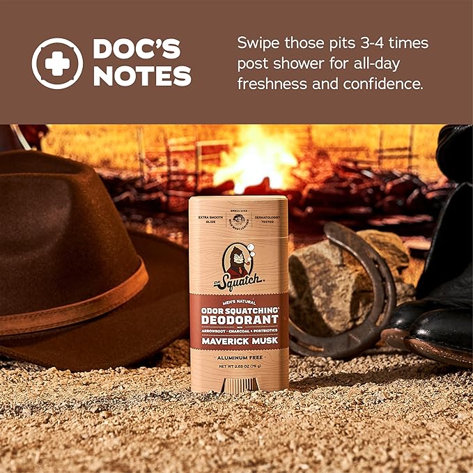 Dr. Squatch Natural Men’s Deodorant – Aluminum Free Natural Deodorant Men with Charcoal & Postbiotics for 72-Hour Odor Protection – Maverick Musk, 2.65oz Stick (3-Pack)