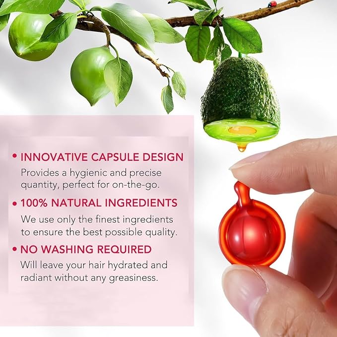Hair Treatment Serum,Vitamins A C E Pro B5,No Rinse Essence for Frizzy and Dry Damaged Hair,with Argan Avocado & Moroccan Oil (40 Capsules)