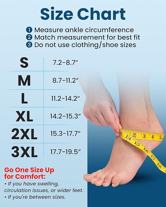 - ๐๐ผ๐ป'๐ ๐ ๐ถ๐๐ - Refer to our socks size chart for accurate sizing instead of using clothing or shoe sizes. Important for L size: The "L" stands for Large, not Left. Our compression sleeves are universal for both feet and can be worn on either the left or right foot