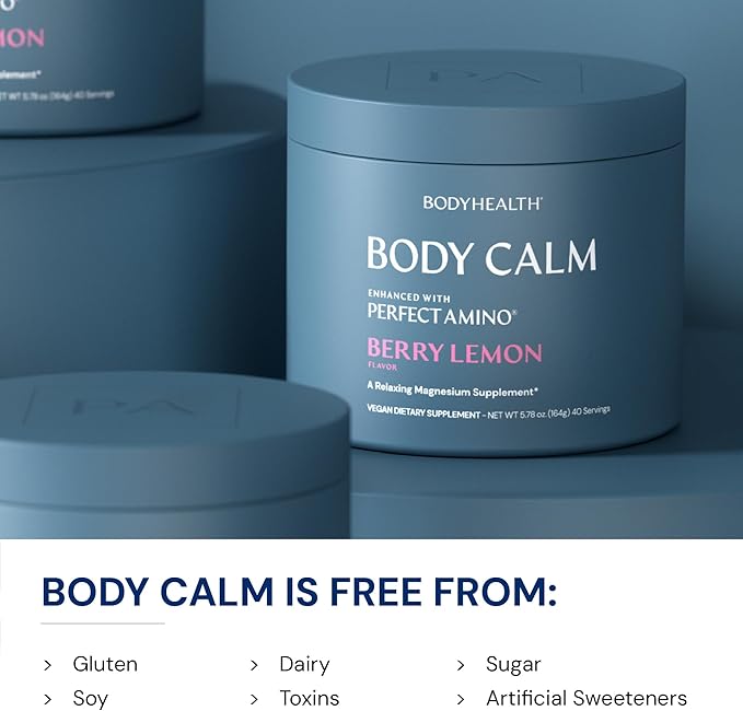 BodyHealth Body Calm Enhanced with PerfectAmino, High Absorption Magnesium Supplement for Men and Women, Magnesium Powder for Sleep, Berry Lemon (40 Servings)