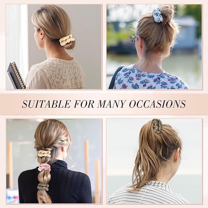 - Multifunctional Silk Hair Tie: Our silk scrunchies suitable for daily use, parties, wedding, work, sports, travel, and birthday, easily paired with clothing in various colors and fabrics. Easily matches various outfits and hairstyles, and can also be worn on the wrist as a decoration.