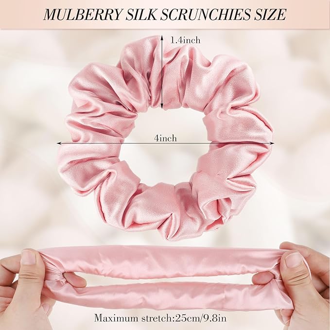 - 100% Mulberrry Silk: Our silk scrunchies are formulated with the 19 momme mulberry silk, silk smooth surface, shiny, comfortable and gentle on hair, prevent hair being damage and tangled.