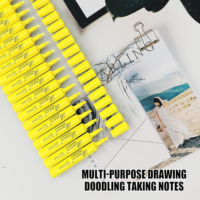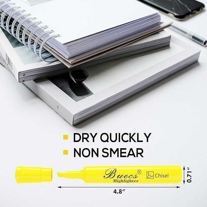 Buecs Highlighters Bulk Pack, 96 Count, Chisel Tip,Fluorescent Yellow, suitable for Adults Highlighting Planner Notes, Office School Supplies