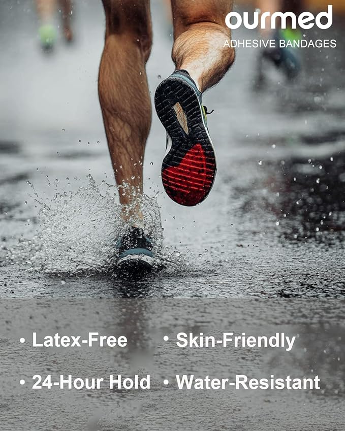 - Non-Natural Latex Hypoallergenic: Ourmed fabric flexible bandage is great for sensitive skin and peel off without any damaging the skin, allowing for painless removal