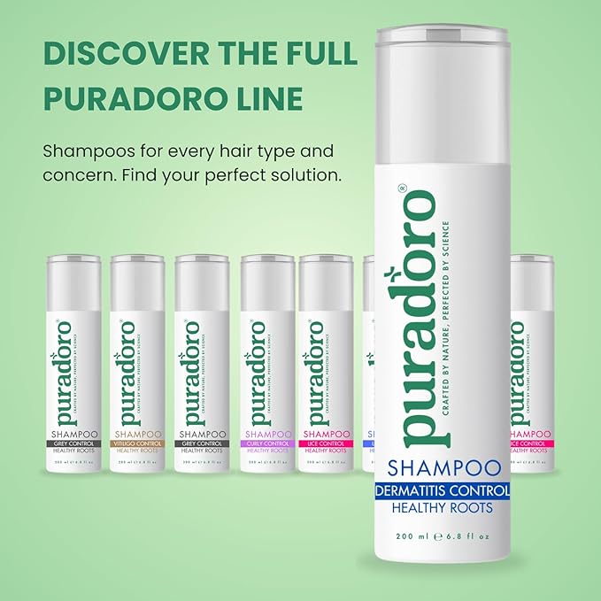 Puradoro Dermatitis Control & Healthy Roots Shampoo – Soothes Seborrheic Dermatitis, Reduces Sebum, Infused with Tea Tree, Jojoba & Chamomile, Natural Scalp Relief For Men & Women