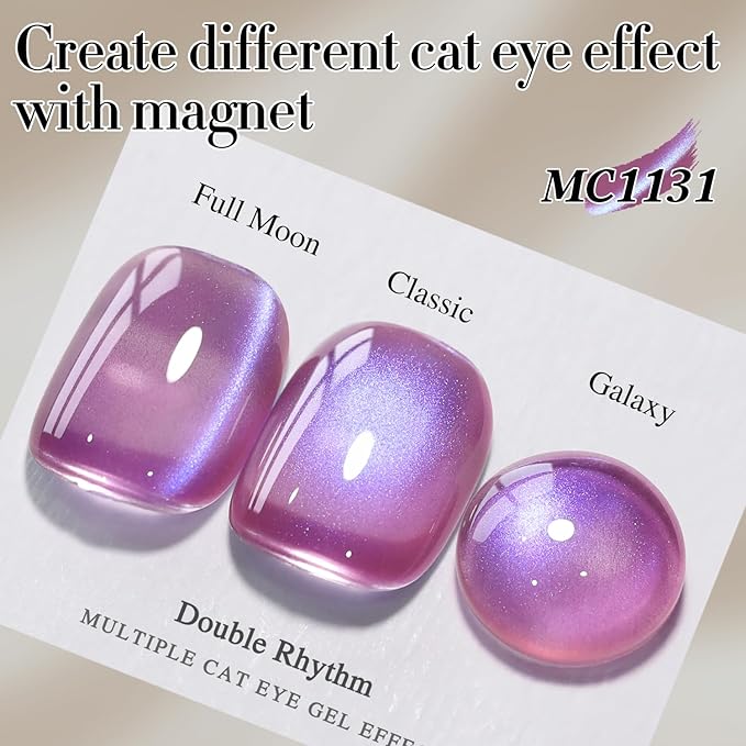 - Cat Eye Gel Nail Polish : Double Rhythm cat eye gel nail polish kit includes 1 color 15ml / 0.5 fl.oz gel nail polish. The cat eye gel can be combined with different bacse colors arbitrarily, you can get different colors nail art.You can use different base coat to creat different sytles.