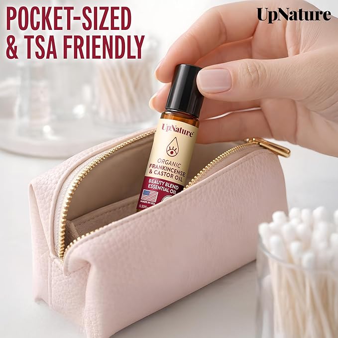 UpNature Beauty Castor Oil Roll On Eye Roller - 100% Organic Frankincense and Castor Oil for Face, Dark Circles, Fine Lines, Under Eyes and Skin