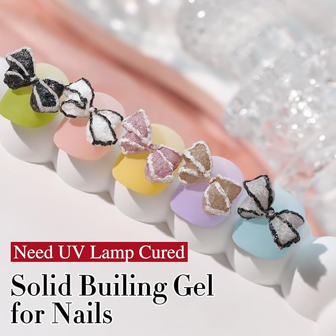 - Multifunctional Solid Building Gel: This solid building hard gel can be used for nail extensions, sculpting,carving, nail designs and stick decoration. It can also be used to apply gel tips and large nail charms/jewels as well as to make charms in silicone molds. Soft material can be kneaded into any shape or other decoration, allowing you to create various 3D nails art.