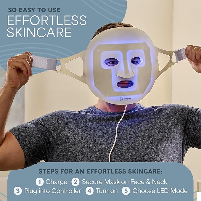 Lifepro Red Light Therapy Mask –Revitaglow Infrared Red Light Therapy for Face and Neck - LED Mask with 3 to 4 Modes – 2000mAh Battery & Auto-Timer - for Daily Skin Wellness and Comfort