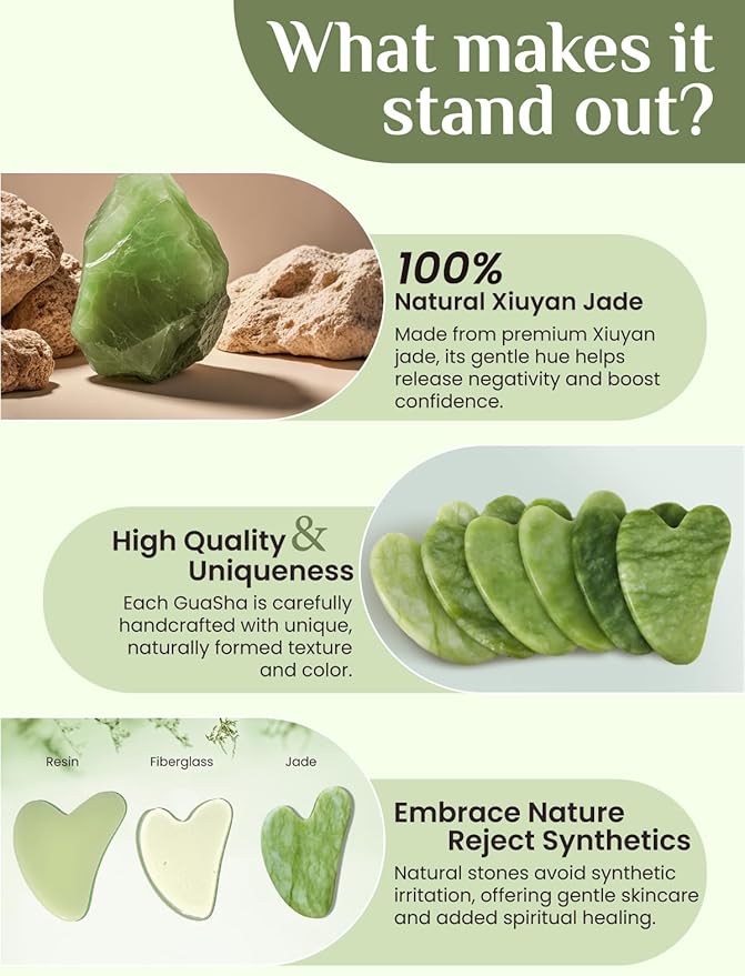 - Sourced from Nature: Rena Chris Gua Sha Facial Tool is handcrafted from 100% natural Xiuyan Jade. Xiuyan jade symbolizes warmth and softness
