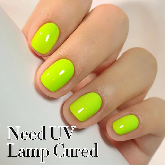 Double Rhythm 0.50 OZ Gel Polish Same Color Same Bottle Golden Round Hema Free Neutral Natural Milky 15 ML Jelly UV Polish Art DIY at Home (Neon Yellow Green-C1305)