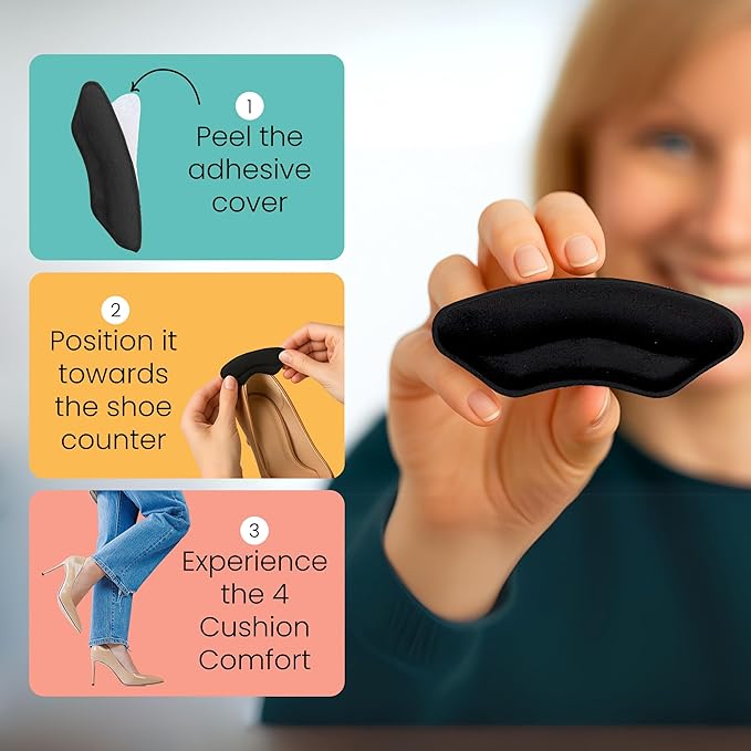 - NO SLIP NO PROBLEM – Our adhesive foot pads will stay in place all day with no risk of ruining your favorite pair of shoes.