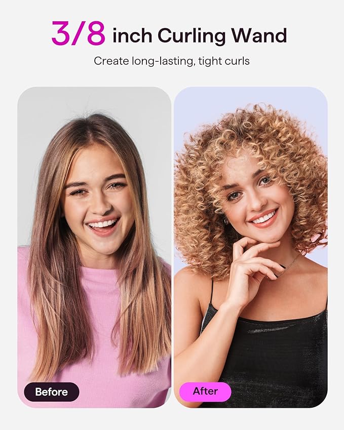 - LCD Digital Display & 9 Temperature Settings: This 3/8 inch small curling iron with adjustable temperatures provides precise control ( 260℉ to 420℉) , making it suitable for thin, normal and thick, coarse hair
