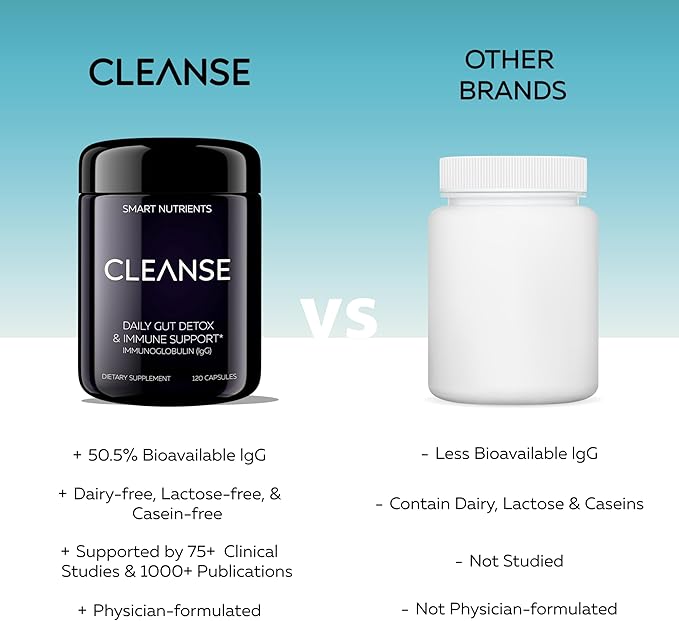 - CLINICALLY PROVEN & AWARD-WINNING Ingredient: Pharmaceutical grade Immunoglobulin (IgG) in CLEANSE has been the subject in over numerous published human clinical trials. CLEANSE IgG helps support healthy digestion, detoxification, and gut barrier function*.