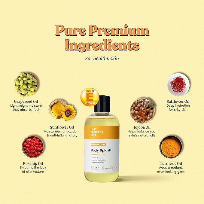 Her Fantasy Box | Body Splash Hydrating Body Oil (Pineapple Creme) - Moisturizing, Non-Greasy Formula for Soft, Smooth Skin - All-Natural, Lightweight & Nourishing