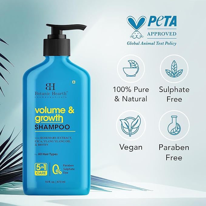 Botanic Hearth Rosemary Shampoo Infused With Cica, Ylang Ylang Oil & Biotin Oil – Clarifying Shampoo For Hair Volume, Growth & Strength | Paraben & Sulfate Free | For All Hair Types, 16 Fl Oz