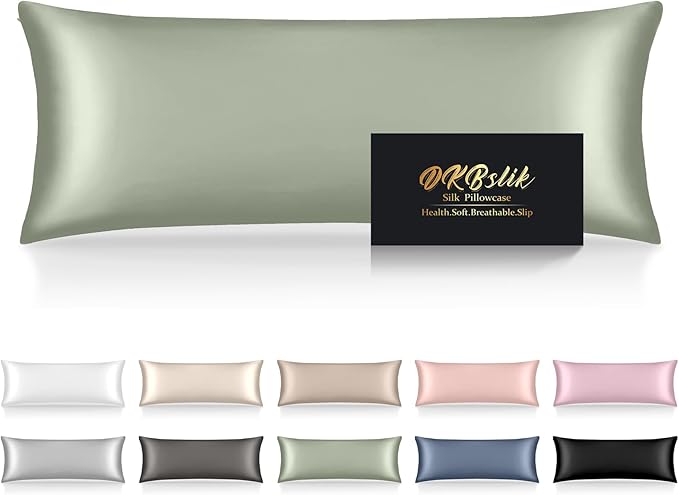 Silk Body Pillow Cases, Mulberry Silk Body Pillow Cover with Zipper, Smooth, Anti Acne, Cooling Sleep Both Sides Natural Silk Satin 20x54 Body Pillowcase, Gifts for Women Men, Sage Green