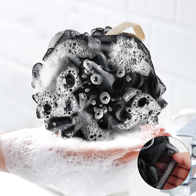 - Good bath partner:Dense mesh, bubble production is fast and many! The structure of the bath sponge is dense and fluffy. When you use a small amount of body wash or soap on bath sponges for shower, you can create a rich foam. Soft mesh, skin care