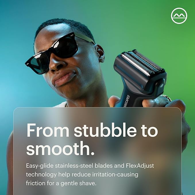 - SKIN-CLOSE SHAVE: The SkinSafe* three-blade foil attachment shaves up to three days of growth with ease, using FlexAdjust technology and stainless-steel blades to help reduce razor burn and provide a smooth finish. *SkinSafe technology does not guarantee cut protection.