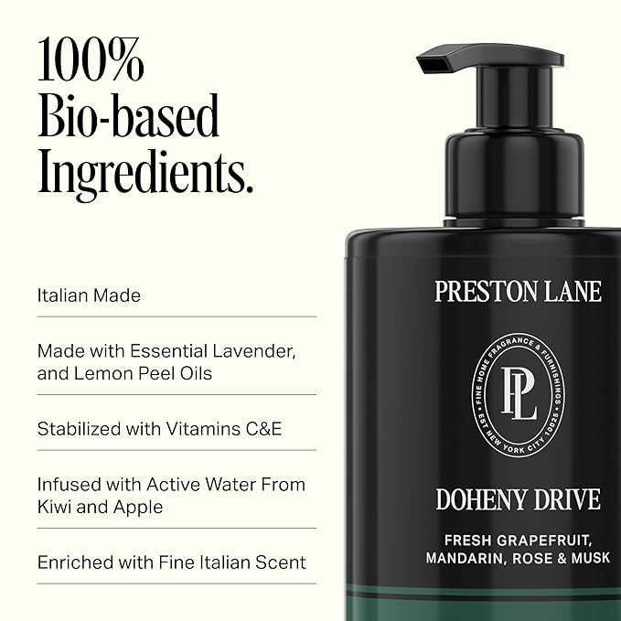 Preston Lane Luxury Hand Cream, Doheny Drive Scent, Made in Italy | Hydrating Formula with Tea Tree, Lavender & Lemon Essential Oils, Hyaluronic Acid, Vitamins C & E, and Kiwi & Apple Water