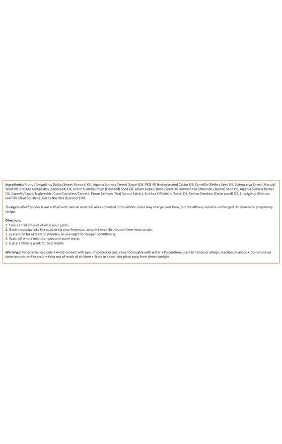The Ageless Box Ayurvedic Hair Oil Serum – Reduces Hair Fall, Tames Frizz & Curls, Strengthens Roots & Supports Hair Growth – Amla, Argan, Bhringraj & Rosemary Blend – Vegan, Cruelty-Free – 50ml