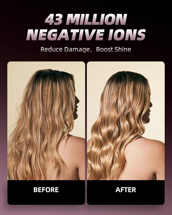- HASSLE-FREE USE: Designed with 43 million negative ions, this curling iron helps neutralize static electricity, leaving hair silky smooth and frizz-free. The curling iron also features essential oil protein ceramic-coated barrel to minimize damage to the hair