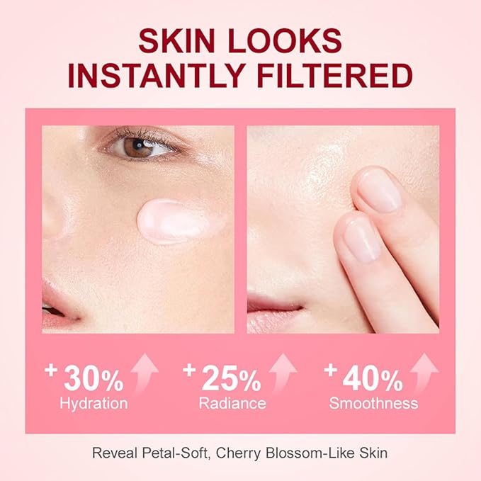 - ❀【Moisturizing Ingredients】Our face care set for women contains cherry blossom Flower Extract, which provides a natural and gentle nourishment to the skin.In addition,it has Sodium Hyaluronate for excellent moisture retention,vitamin C for antioxidant benefits,and Niacinamide to improve skin texture.These components make this cherry blossom skincare set for women a top choice for those seeking high-quality skin care.