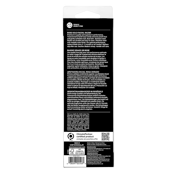 - Premium in quality and superior in performance, now available in a Rose Gold. Tweezerman's Facial Razor provides easy removal of peach fuzz while gently exfoliating skin. Designed to be reusable with refillable blades & high-quality stainless steel.