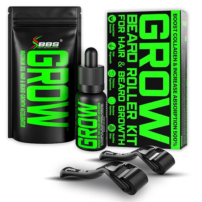 - ✅ GROW️ Beard Roller Kit: Unlock a fuller, thicker beard with our premium kit; the best hair follicle stimulator kit. Made for men, not women like most other kits and rollers, the GROW kit enhances your beard follicle density, stimulating the skin beneath your beard to increase collagen, nutrient absorption, and growth. A GROW beard roller for men is easy to use and essential for anyone looking to improve their facial hair appearance and texture to achieve that lush, enviable beard effortlessly! Needle Length measurement: .25 MM.