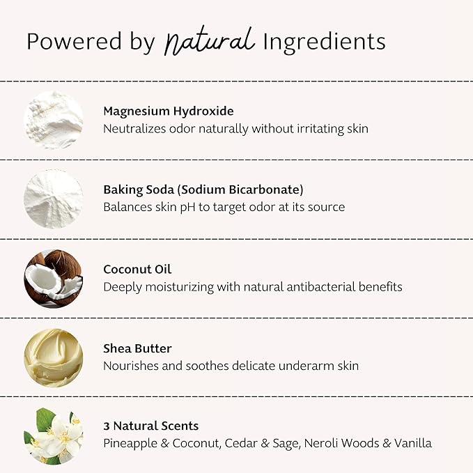 - STAY FRESH & CONFIDENT – 3 PACK (BOTANICAL + TROPICAL): This plant-based natural deodorant 3-pack keeps you fresh from morning to night, with a blend of organic Coconut Oil, Magnesium Hydroxide, and Bicarbonate. Includes Cedar + Sage, Neroli + Vanilla, and Pineapple + Coconut.