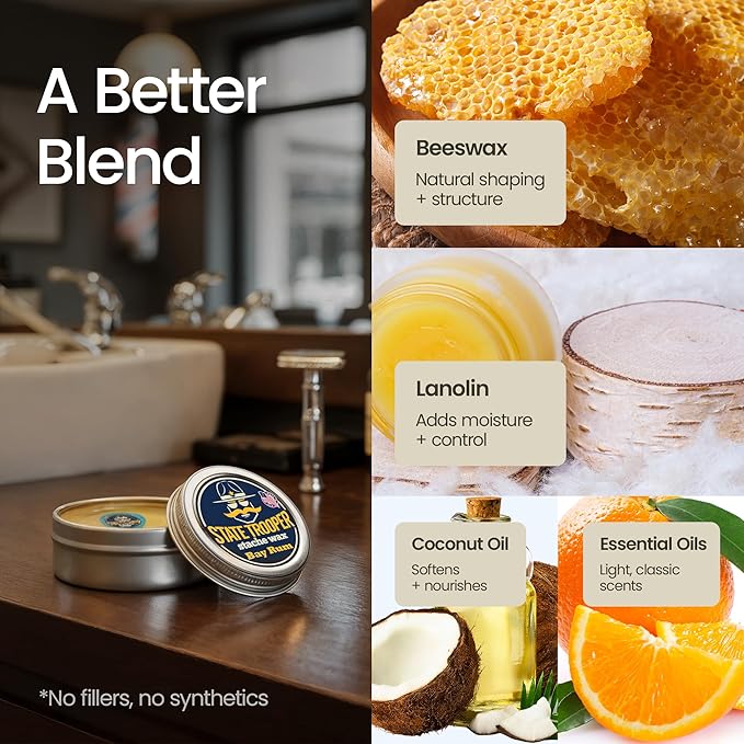 - All-Natural Ingredients: Nourish your mustache with Beeswax, Coconut Oil, Lanolin and Essential Oils