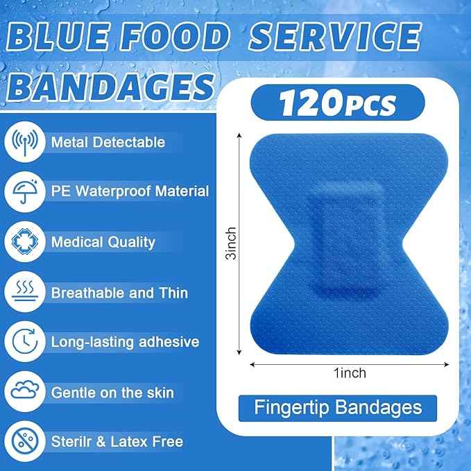 - Highly Visible and Safe Material: our blue fabric bandages are designed especially for the food processing industry, serving as a highly visible and safe solution; They stand out with their distinctive bright blue color; The bandages are crafted from durable PE material that is both safe and latex free, making it a good choice for those with latex allergies