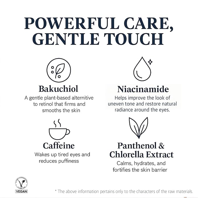 - 1. LIFT & FIRM — Smooth, Youthful Eyes Powered by Bakuchiol, a gentle plant-based retinol alternative that visibly firms and smooths fine lines, restoring elasticity and a lifted look to the delicate eye area.